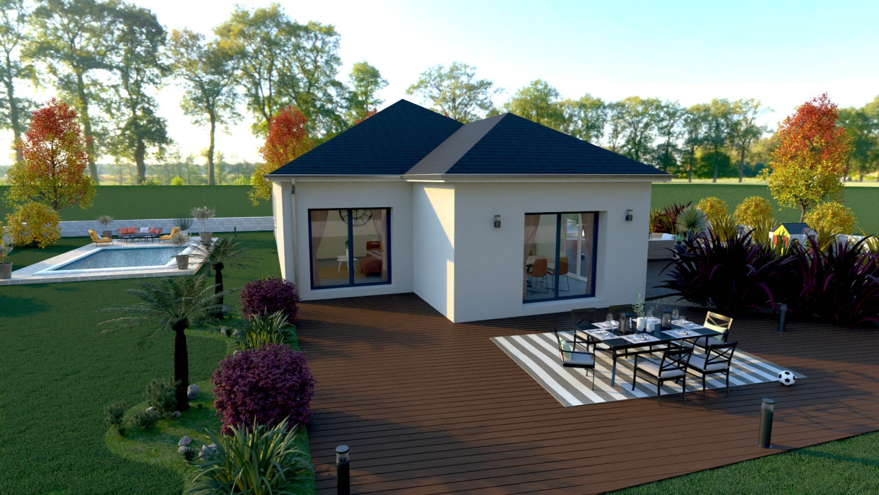 *Prix indicatif, non contractuel, basé sur un terrain proposé par notre partenaire foncier selon disponibilité. Le prix comprend la construction du modèle présenté sous réserve de modifications des fournisseurs, du choix des options et de l’étude personnalisée du projet. Frais d’acte, frais de notaire, taxes d’urbanisme et viabilisations non inclus.