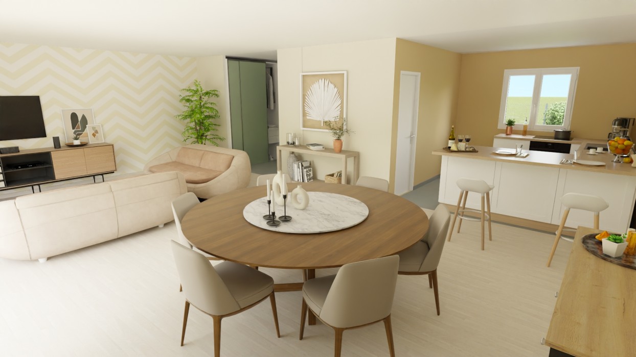 *Prix indicatif, non contractuel, basé sur un terrain proposé par notre partenaire foncier selon disponibilité. Le prix comprend la construction du modèle présenté sous réserve de modifications des fournisseurs, du choix des options et de l’étude personnalisée du projet. Frais d’acte, frais de notaire, taxes d’urbanisme et viabilisations non inclus.