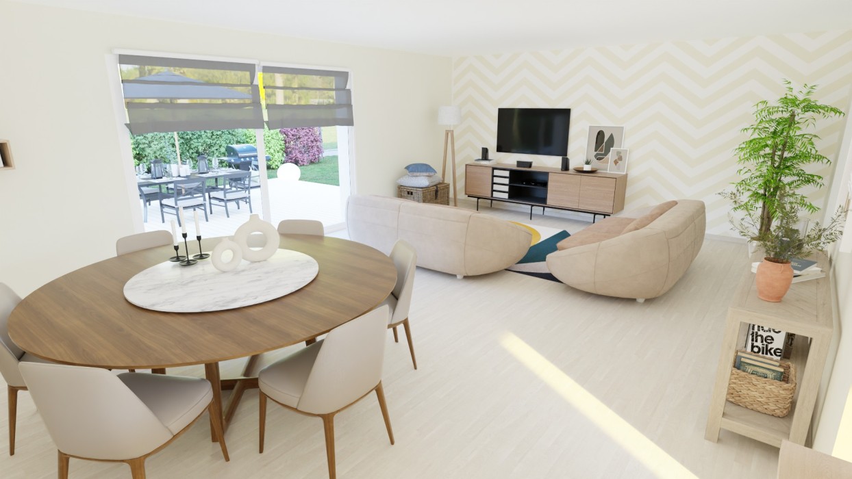 *Prix indicatif, non contractuel, basé sur un terrain proposé par notre partenaire foncier selon disponibilité. Le prix comprend la construction du modèle présenté sous réserve de modifications des fournisseurs, du choix des options et de l’étude personnalisée du projet. Frais d’acte, frais de notaire, taxes d’urbanisme et viabilisations non inclus.