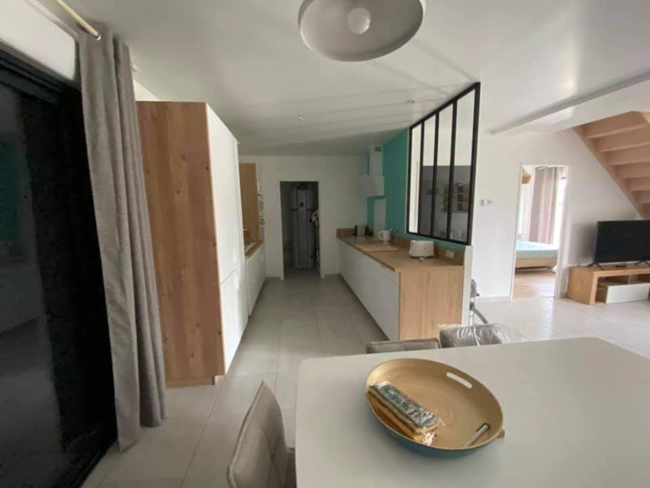 la cuisine est ouverte sur un grand salon séjour très lumineux, une chambre et un cellier à l'étage 3 belles chambres et une salle de bain.
