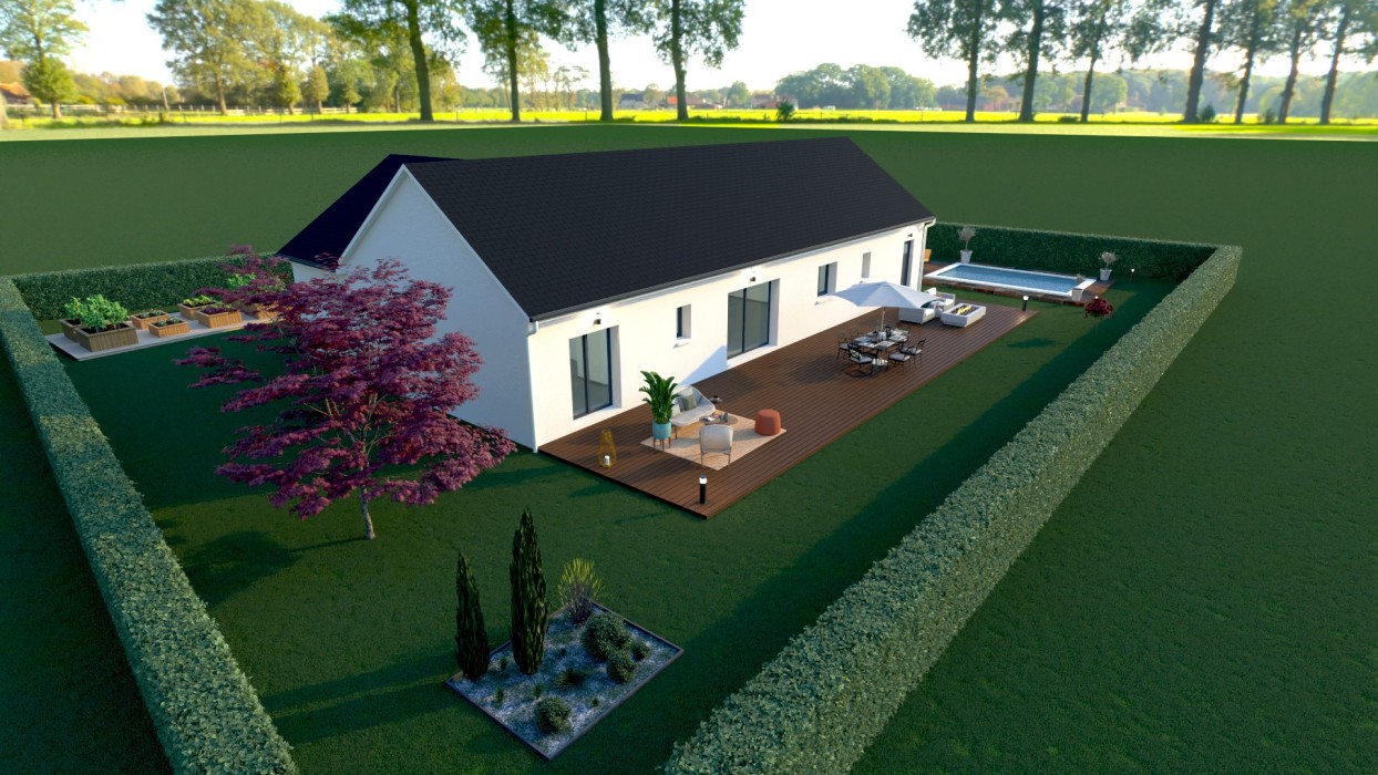 *Prix indicatif, non contractuel, basé sur un terrain proposé par notre partenaire foncier selon disponibilité. Le prix comprend la construction du modèle présenté sous réserve de modifications des fournisseurs, du choix des options et de l’étude personnalisée du projet. Frais d’acte, frais de notaire, taxes d’urbanisme et viabilisations non inclus.