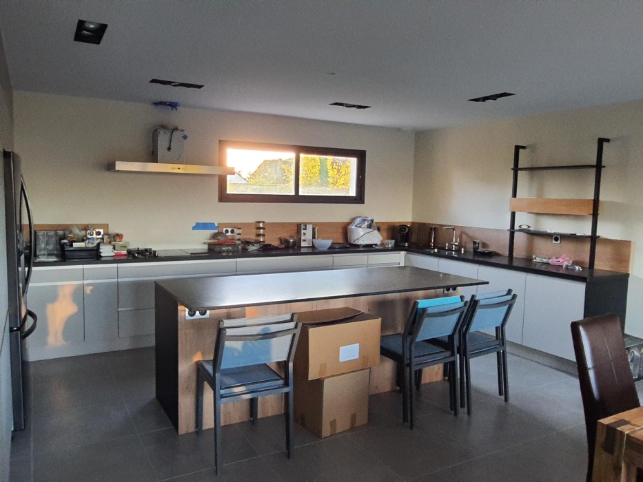 Grandes baies lumineuses, volets roulants électriques, chauffage économique par pompe à chaleur.