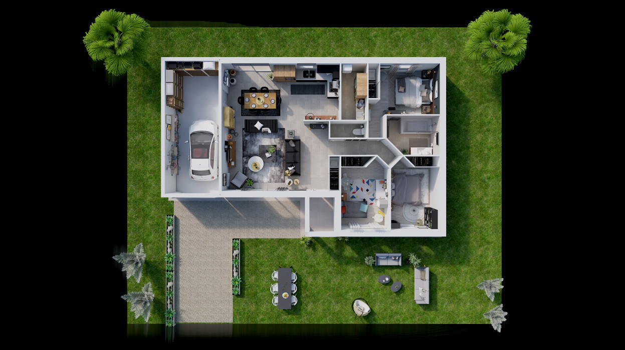*Prix indicatif, non contractuel, basé sur un terrain proposé par notre partenaire foncier selon disponibilité. Le prix comprend la construction du modèle présenté sous réserve de modifications des fournisseurs, du choix des options et de l’étude personnalisée du projet. Frais d’acte, frais de notaire, taxes d’urbanisme et viabilisations non inclus.