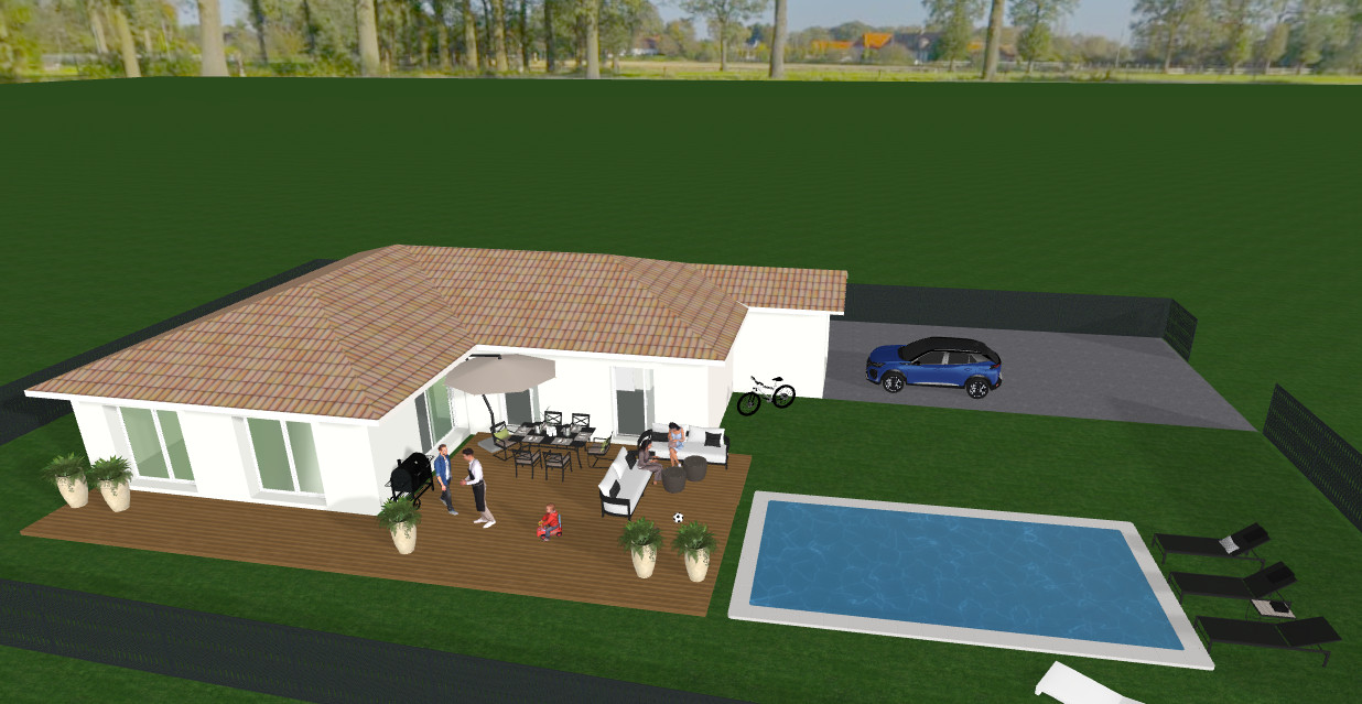 *Prix indicatif, non contractuel, basé sur un terrain proposé par notre partenaire foncier selon disponibilité. Le prix comprend la construction du modèle présenté sous réserve de modifications des fournisseurs, du choix des options et de l’étude personnalisée du projet. Frais d’acte, frais de notaire, taxes d’urbanisme et viabilisations non inclus.