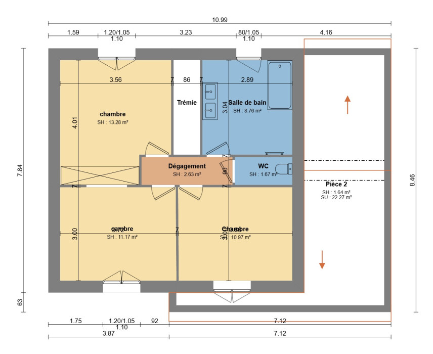 Surface maison : 110 m² habitables – entièrement personnalisable selon vos envies.