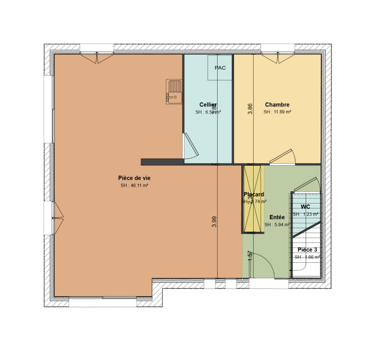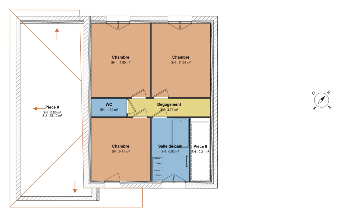 Surface maison : 110 m² habitables – entièrement personnalisable selon vos envies.