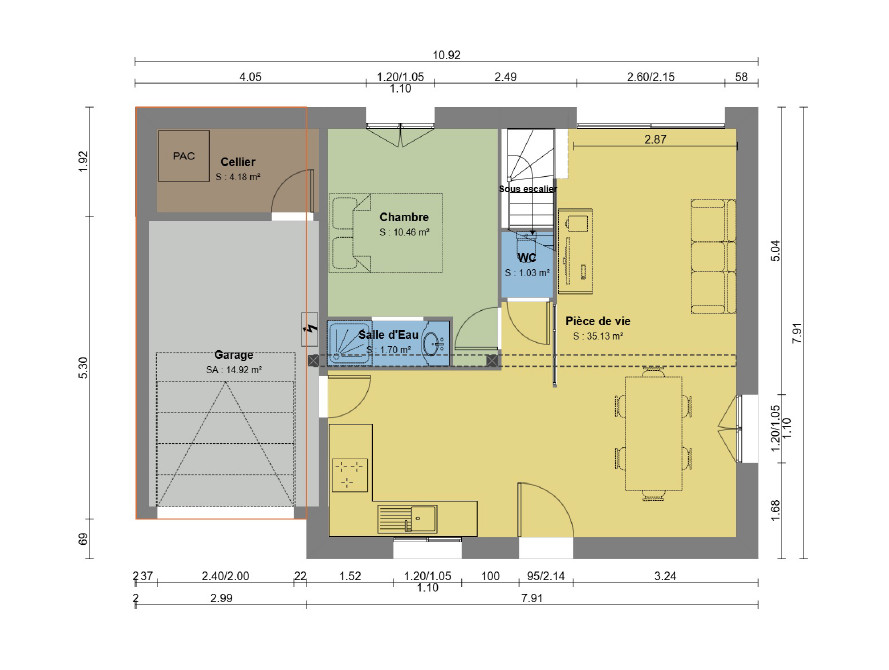 Grande pièce de vie de 35m², idéale pour vos moments en famille et entre amis.
