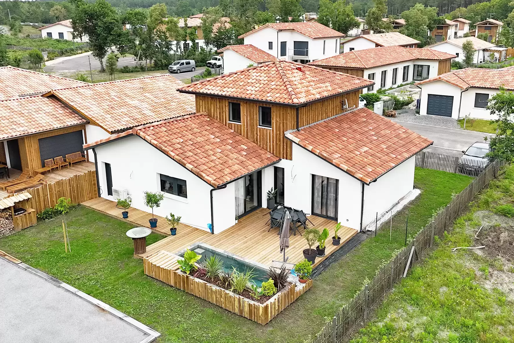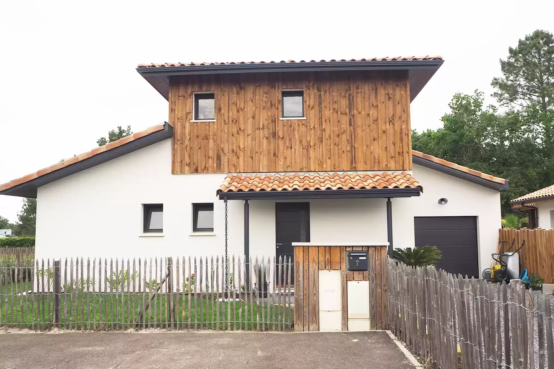 Découvrez cette superbe maison neuve individuelle de 110 m², une maison à étage typique du sud-ouest de la France conçue et construite par Maisons France STYLE à Moliets-et-Maa (40). Cette maison a été pensée et dessinée par les propriétaires, Marylène et Christian, avec notre conseiller commercial : un intérieur confortable et lumineux, complété par des aménagements extérieurs imaginés pour savourer les beaux jours.